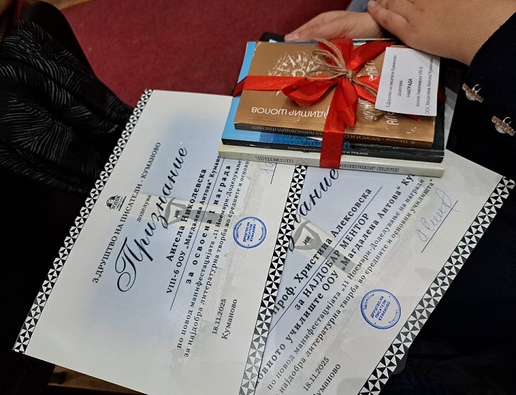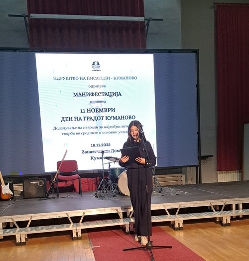 Нашите ученици на ден 18.11.2025 година зедоа учество на XVII Манифестација „11 Ноември-Денот на Куманово“ организиран од Друштво на писатели-Куманово.