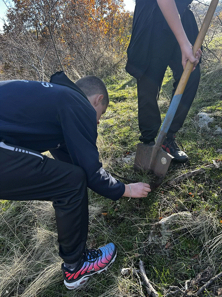 Учениците заедно со наставниците засадија 250 садници зимзелени дрвца околу манастирот.